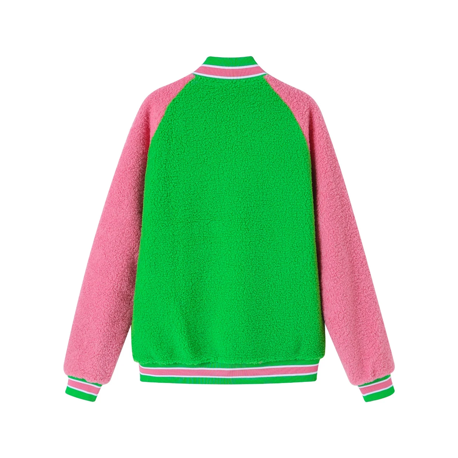Stay warm in style with this premium AKA reversible bomber jacket. Designed for comfort and versatility, this jacket features soft sherpa material and bold embroidered logos, making it perfect for Greek life events, casual wear, or as a collector’s piece.