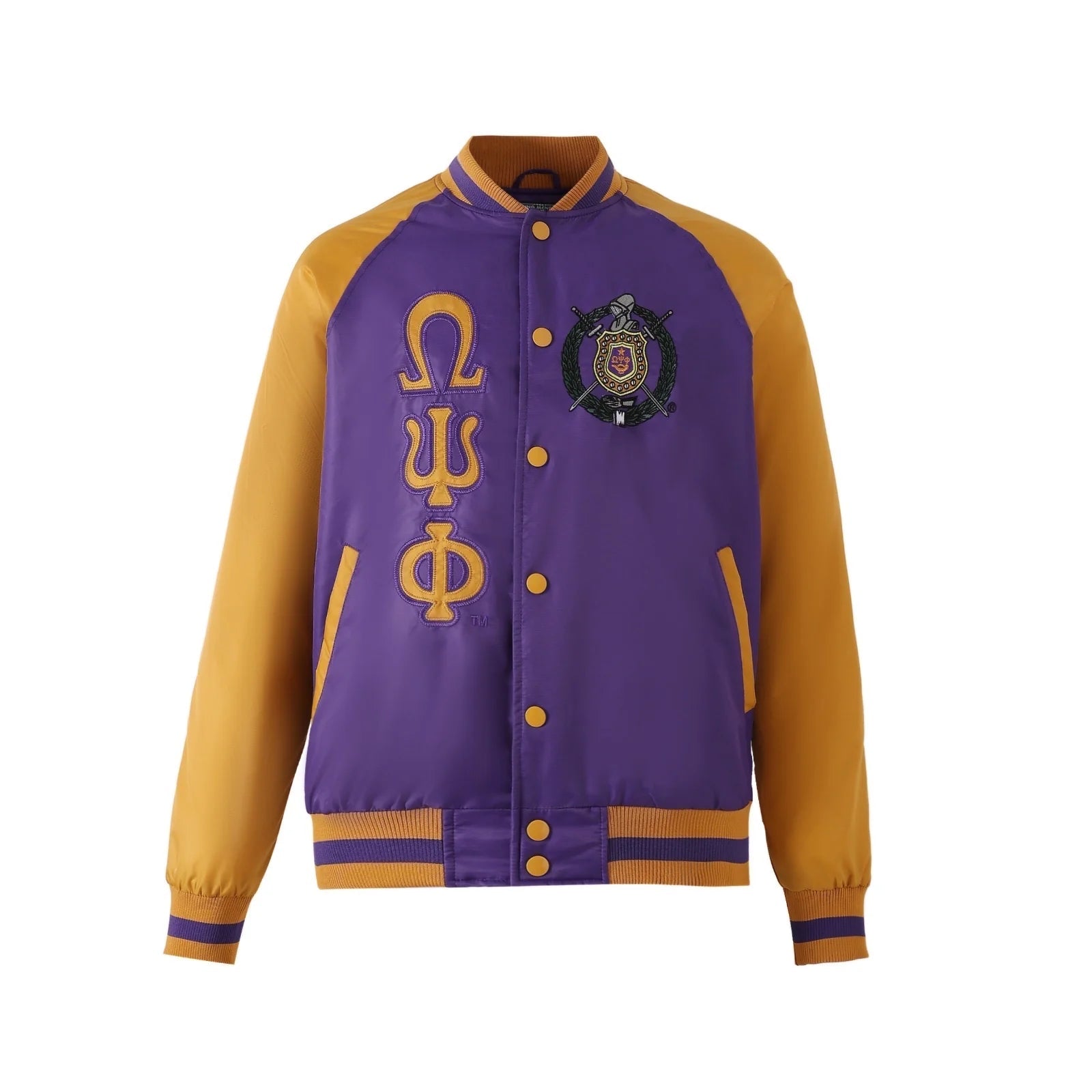 The Omega Bomber Jacket blends modern style with premium details, making it a must-have for any wardrobe. Designed with lightweight, durable nylon material, this jacket is built for comfort and everyday wear. The custom interior lining offers a unique touch and added comfort, while the embroidered applique logos provide a bold, standout look.